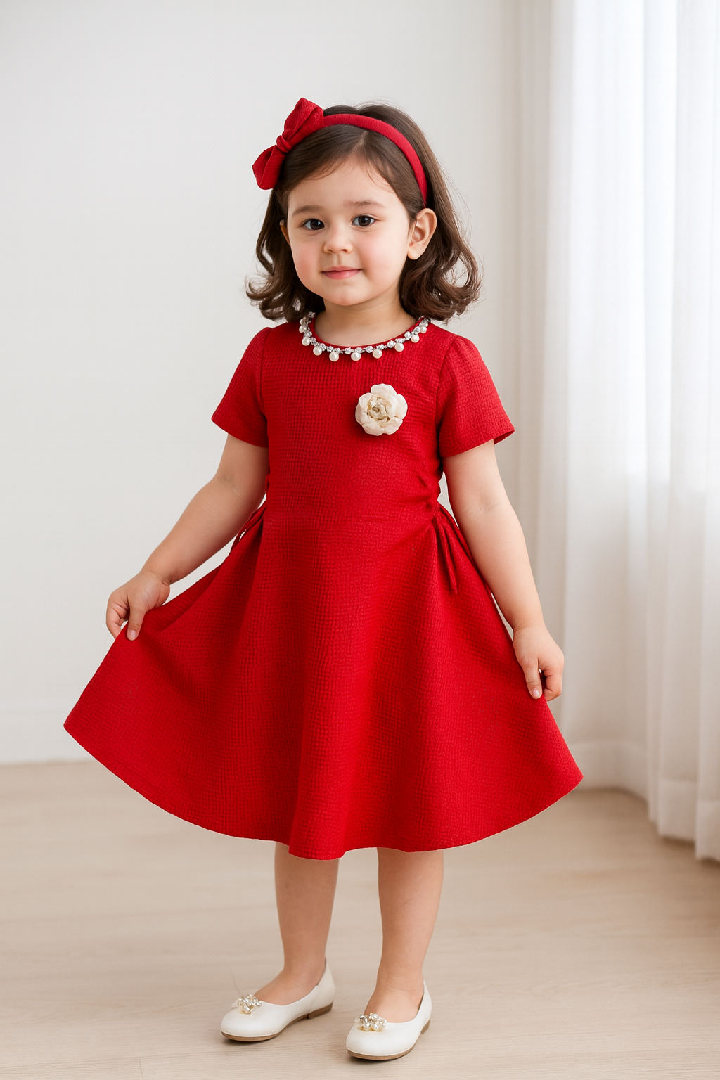 The Zélie Day Dress is the perfect blend of comfort and charm—designed for carefree days and pretty playdates. This short-sleeve A-line dress features soft fabric, subtle side ties for adjustable shaping, and a signature flower accent on the chest. Lightweight and easy to wear, it’s a must-have staple for your little one’s everyday wardrobe.