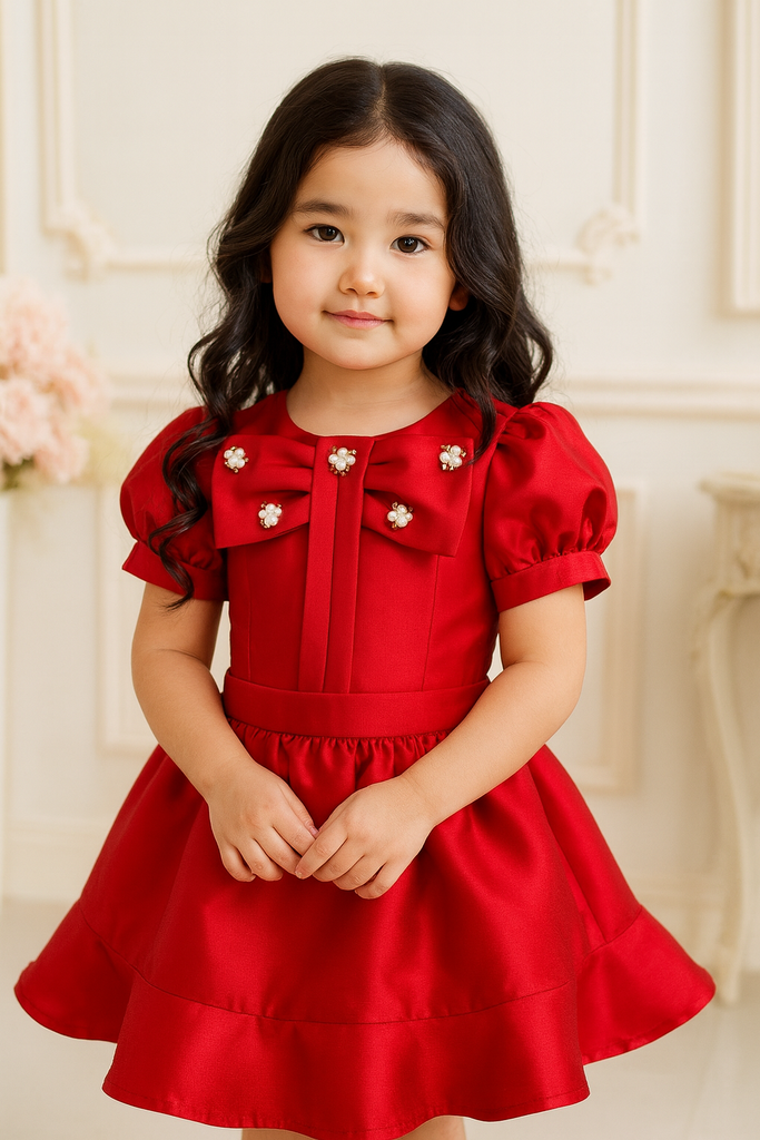 A modern twist on timeless elegance β the Ingrid Red Bloom Coords combine sophistication and comfort in one darling set. Crafted from smooth, high-quality satin, it features a puff-sleeve top adorned with an oversized bow detailed with dainty πΈ pearl-flower embellishments, paired with a flared ruffle skirt that moves gracefully with every step.