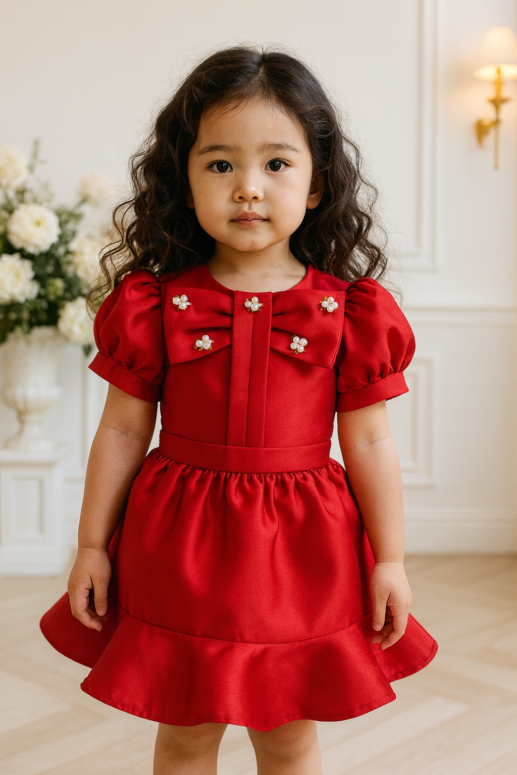 π Weddings β Perfect for flower girls or little guests; the luxe satin and pearl details give an effortlessly refined look.
