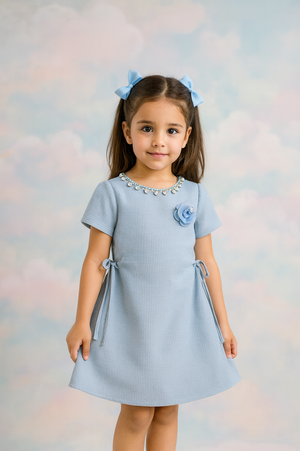 The Zélie Day Dress is the perfect blend of comfort and charm—designed for carefree days and pretty playdates. This short-sleeve A-line dress features soft fabric, subtle side ties for adjustable shaping, and a signature flower accent on the chest. Lightweight and easy to wear, it’s a must-have staple for your little one’s everyday wardrobe. Available in 3 dreamy shades: