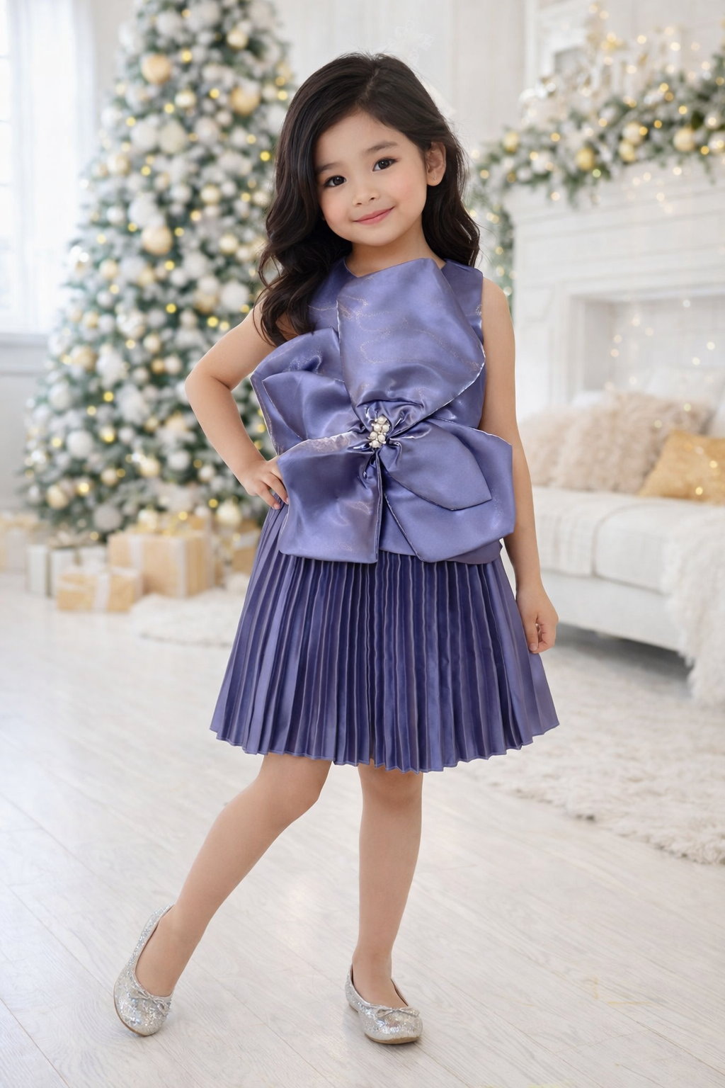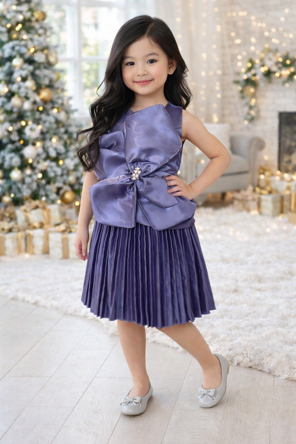 Amara - Purple with Oversized Bow and Pleated Skirt (LL647)